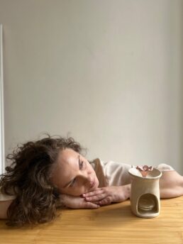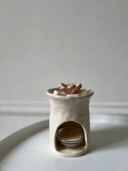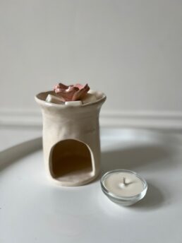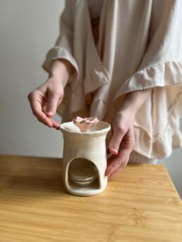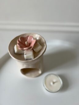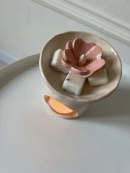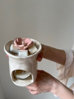 Авторська арома-лампа ручної роботи з кераміки та квіткою мальви всередині. Вона не лише надає простору характеру та індивідуальності, але й нагадує про важливість віри у світле майбутнє та здатність розквітати навіть у важки часи.